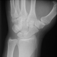 B | Oblique radiograph of the wrist. This shows a fracture of the body of the hamate. |
